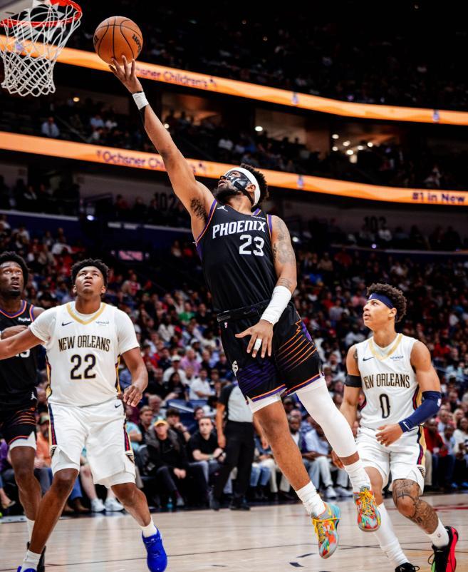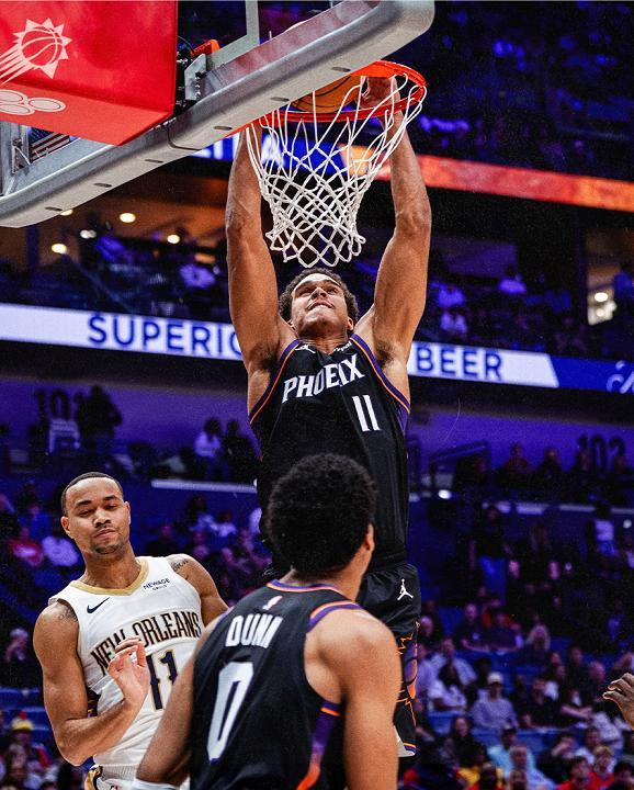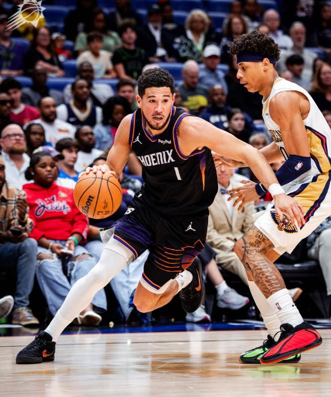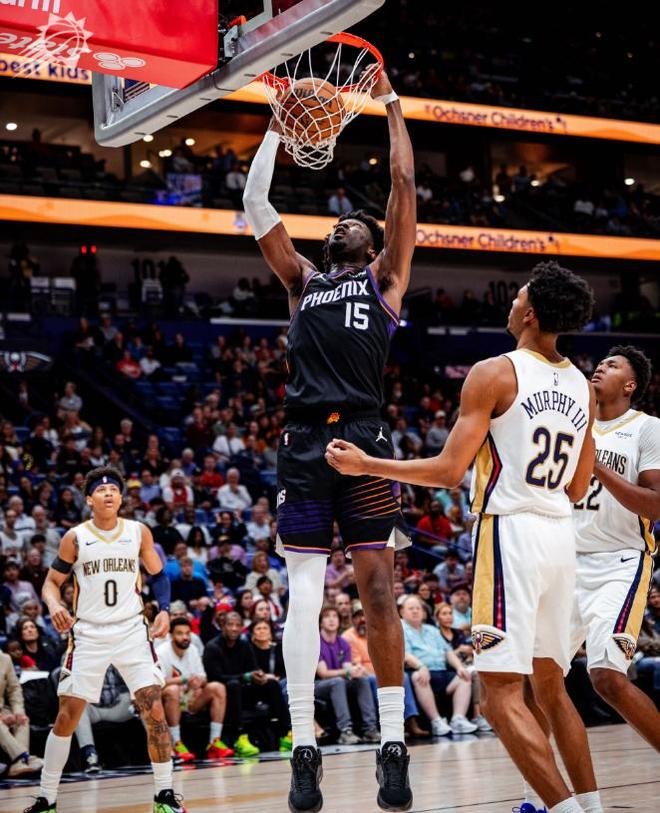 休賽期拆散三巨頭的菲尼克斯太陽,由于陣容不夠豪華,沒有能夠獲得參加本賽季年終大戰(zhàn)的資格,在上一場常規(guī)賽以24分的巨大優(yōu)勢,血洗洛杉磯湖人之后,太陽獲得了兩天的休整時間,這一個比賽日,太陽再度披掛上陣,奔赴新奧爾良挑戰(zhàn)鵜鶘,本場比賽布克在末節(jié)成為了球隊的救世主,單槍匹馬摧毀了鵜鶘的防線,率領(lǐng)太陽以115-108客場凱旋。