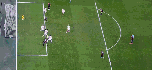 第7分鐘,差一點,加比亞頭球攻門擊中門框